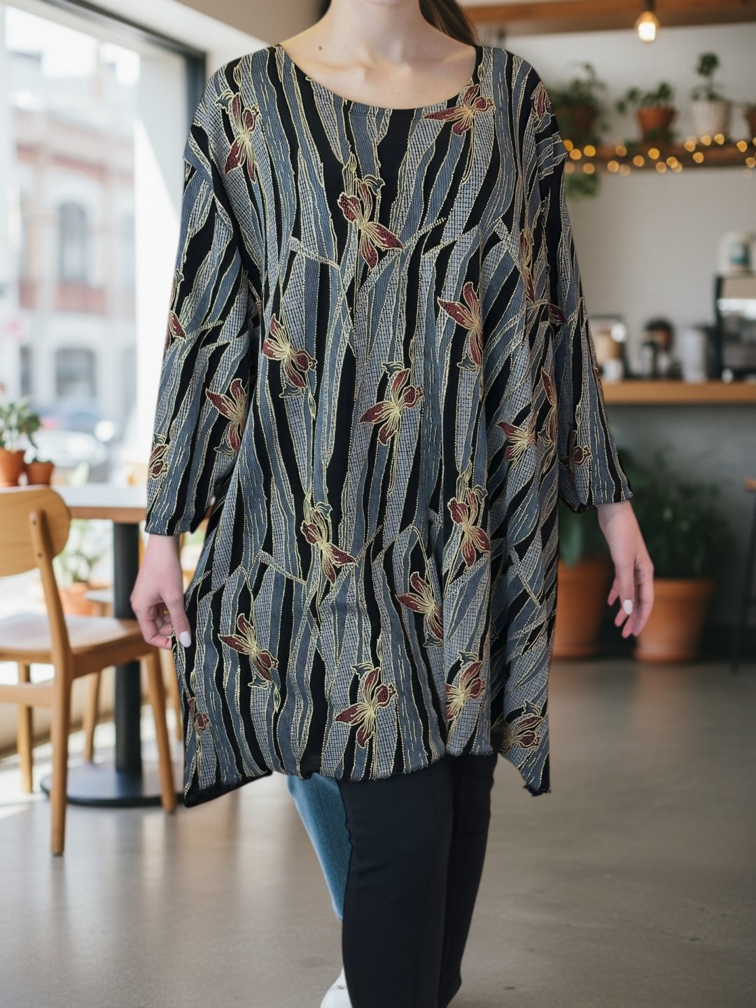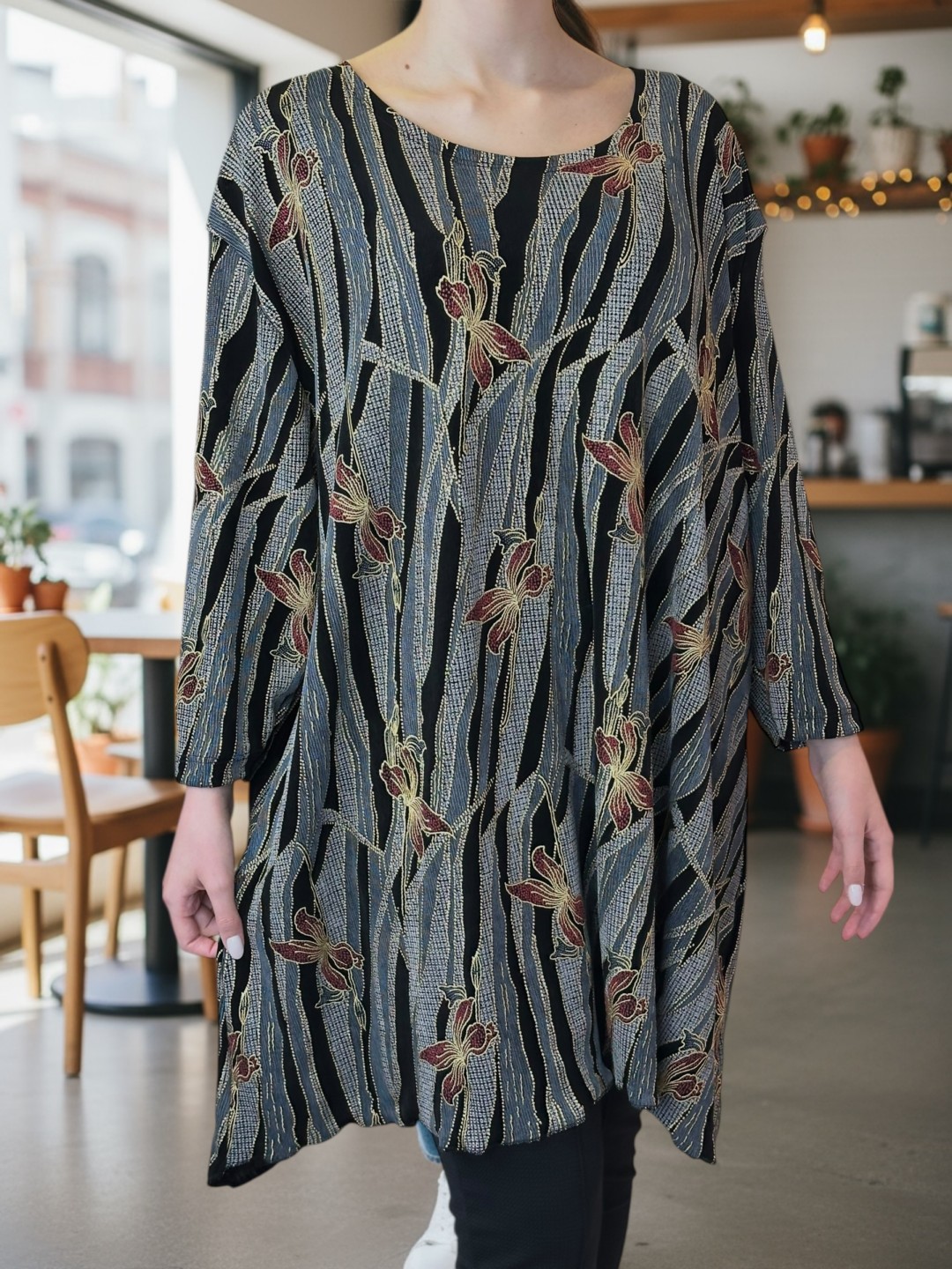 Ανανεώστε την καθημερινή σας γκαρνταρόμπα με αυτό το στιλάτο μπλουζοφόρεμα με τρουακάρ μανίκι, ιδανικό για plus size σιλουέτες! Αναδεικνύει τις καμπύλες, ενώ χαρίζει άνεση. Διαθέσιμο σε One size.