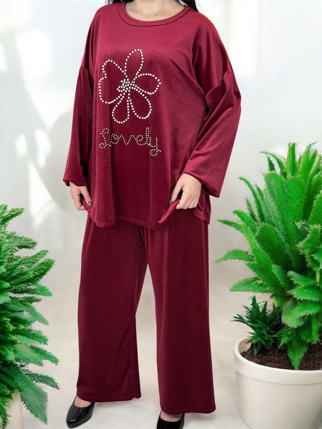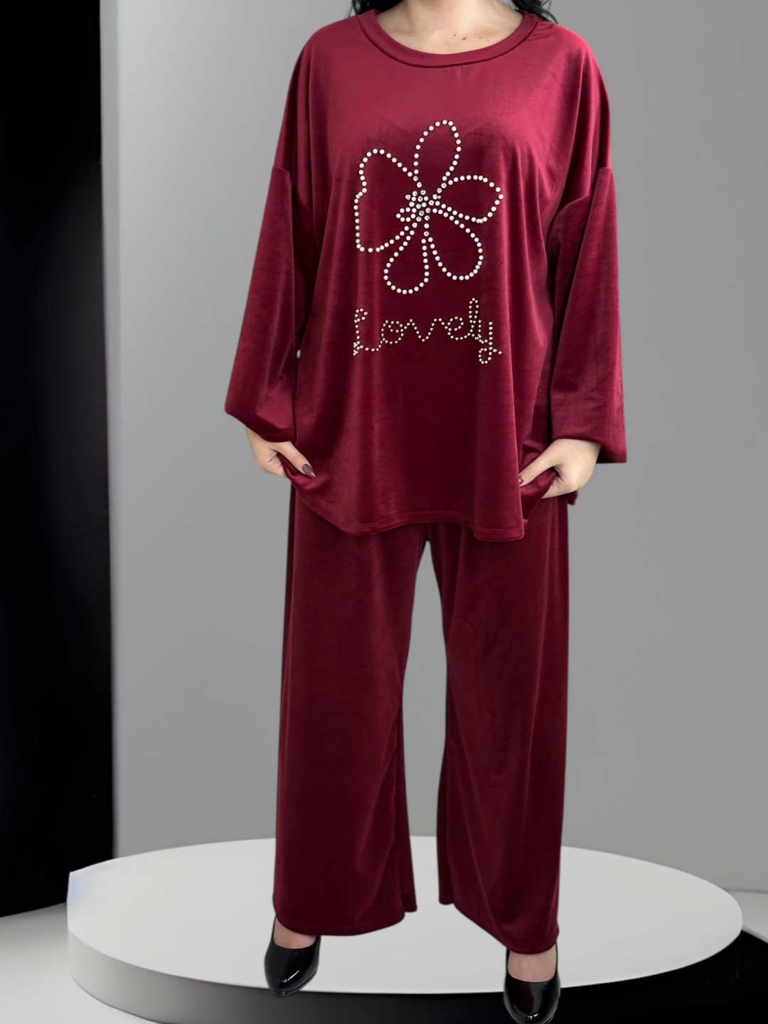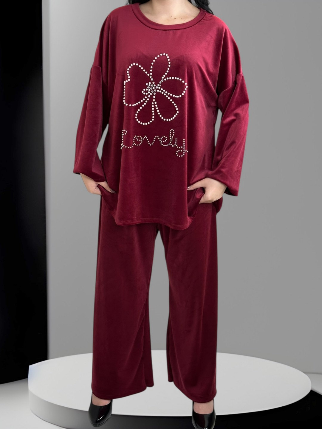 Σετ φόρμας βελούδινη με πέρλες “Lovely”