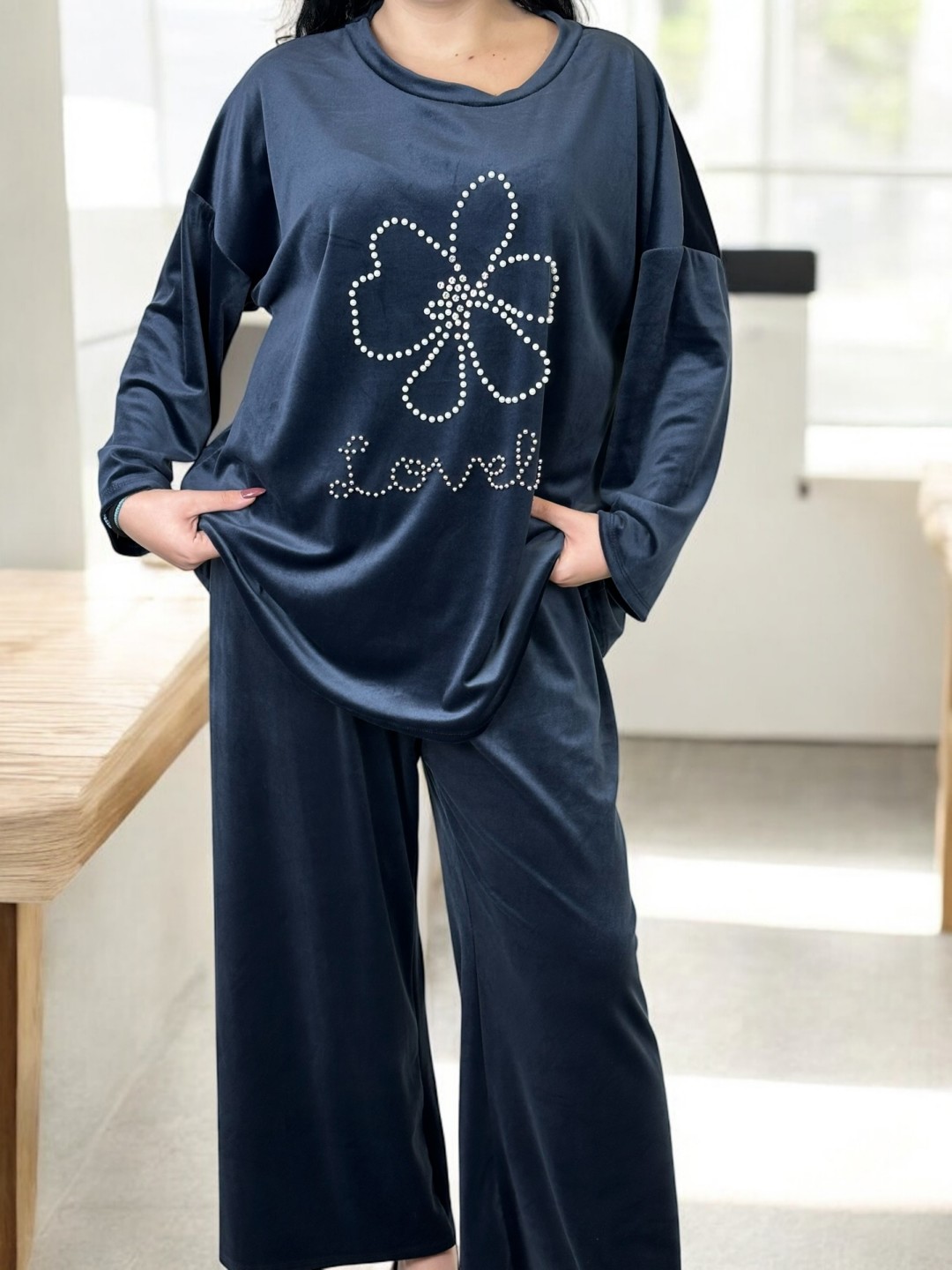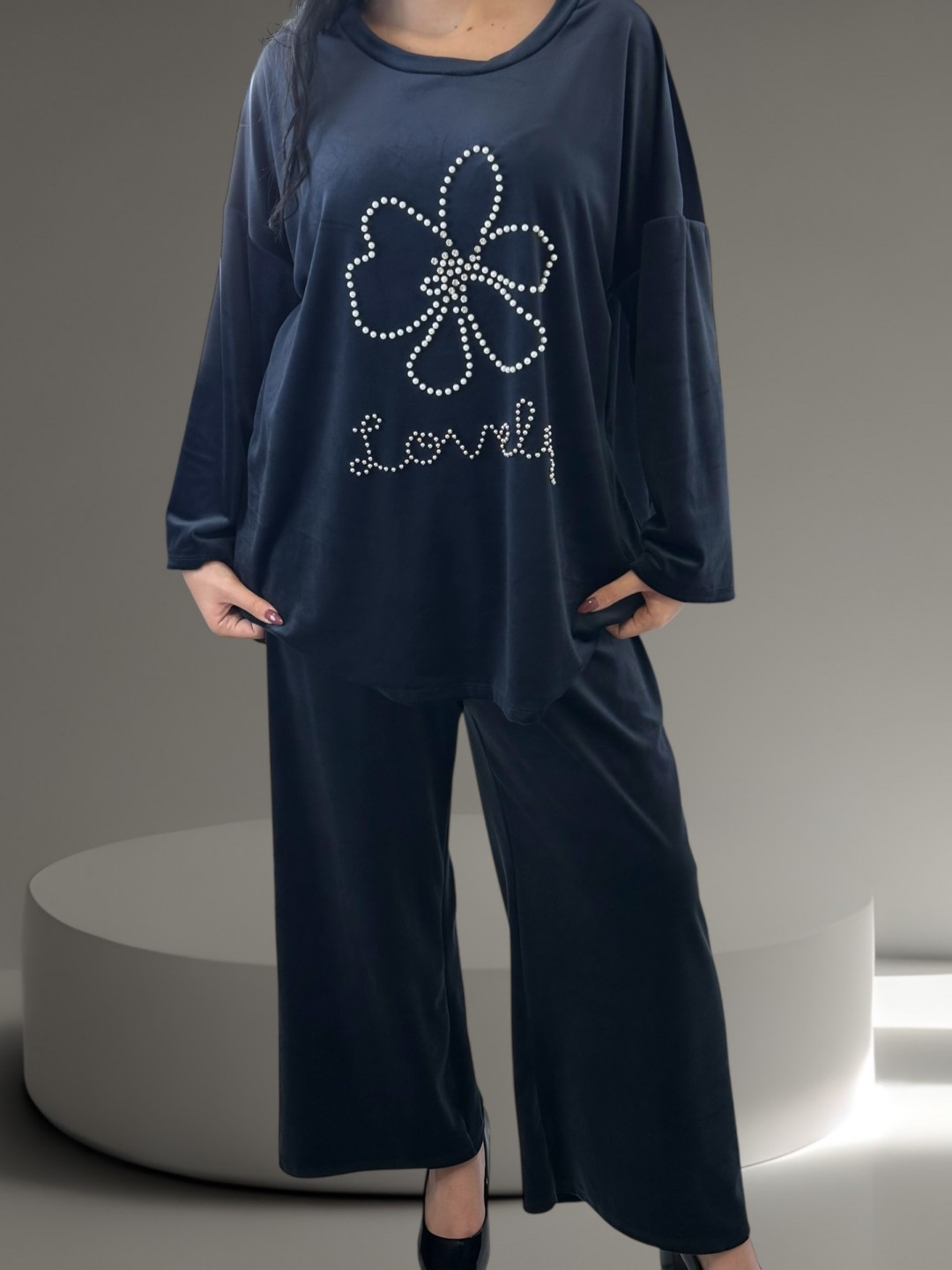 Σετ φόρμας βελούδινη με πέρλες “Lovely”