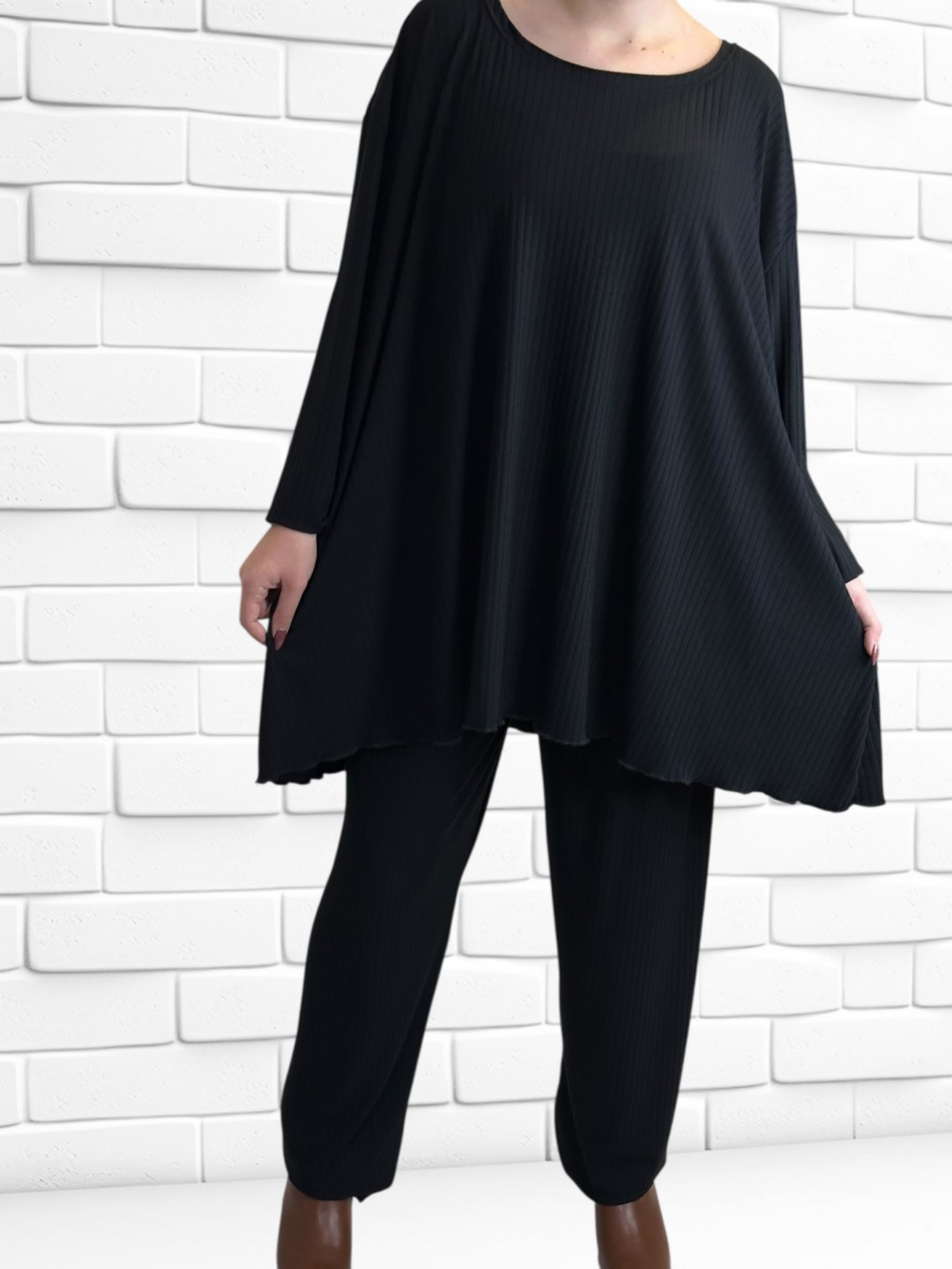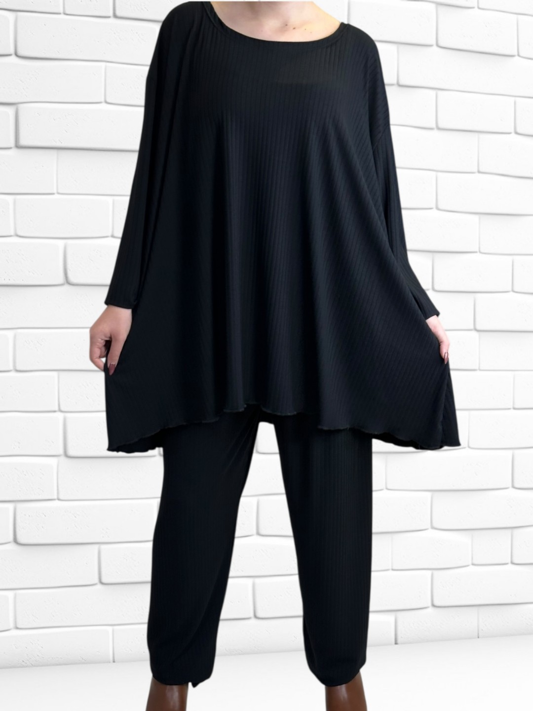Ανανέωσε την γκαρνταρόμπα σου με αυτό το υπέροχο σετ ριμπ με την απαλότητα του cozy style. Είναι plus size, αλλά το μέγεθος είναι one size, για να ταιριάζει σε όλους.