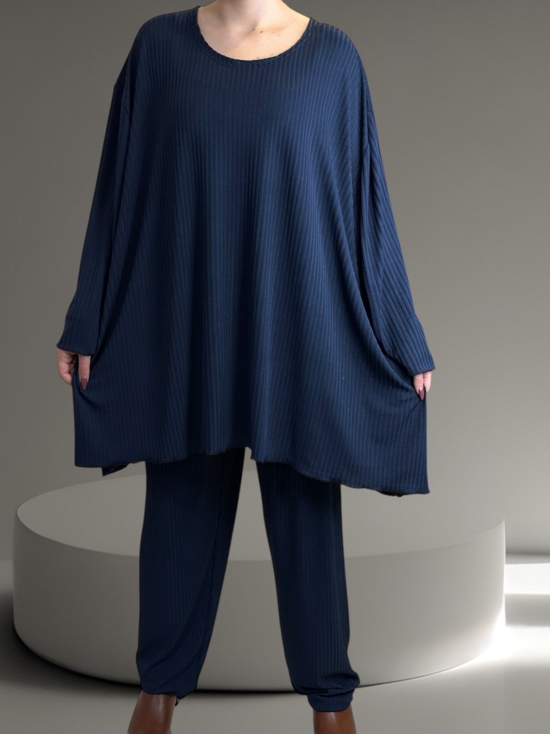 Απολαύστε την άνεση με αυτό το cozy γυναικείο σετ ριμπ μεγέθους plus size! Απαλή υφή που χαϊδεύει το δέρμα και σας προσφέρει ασύγκριτη άνεση όλη την ημέρα. Διατίθεται σε One size, για να ταιριάζει σε κάθε σωματότυπο.