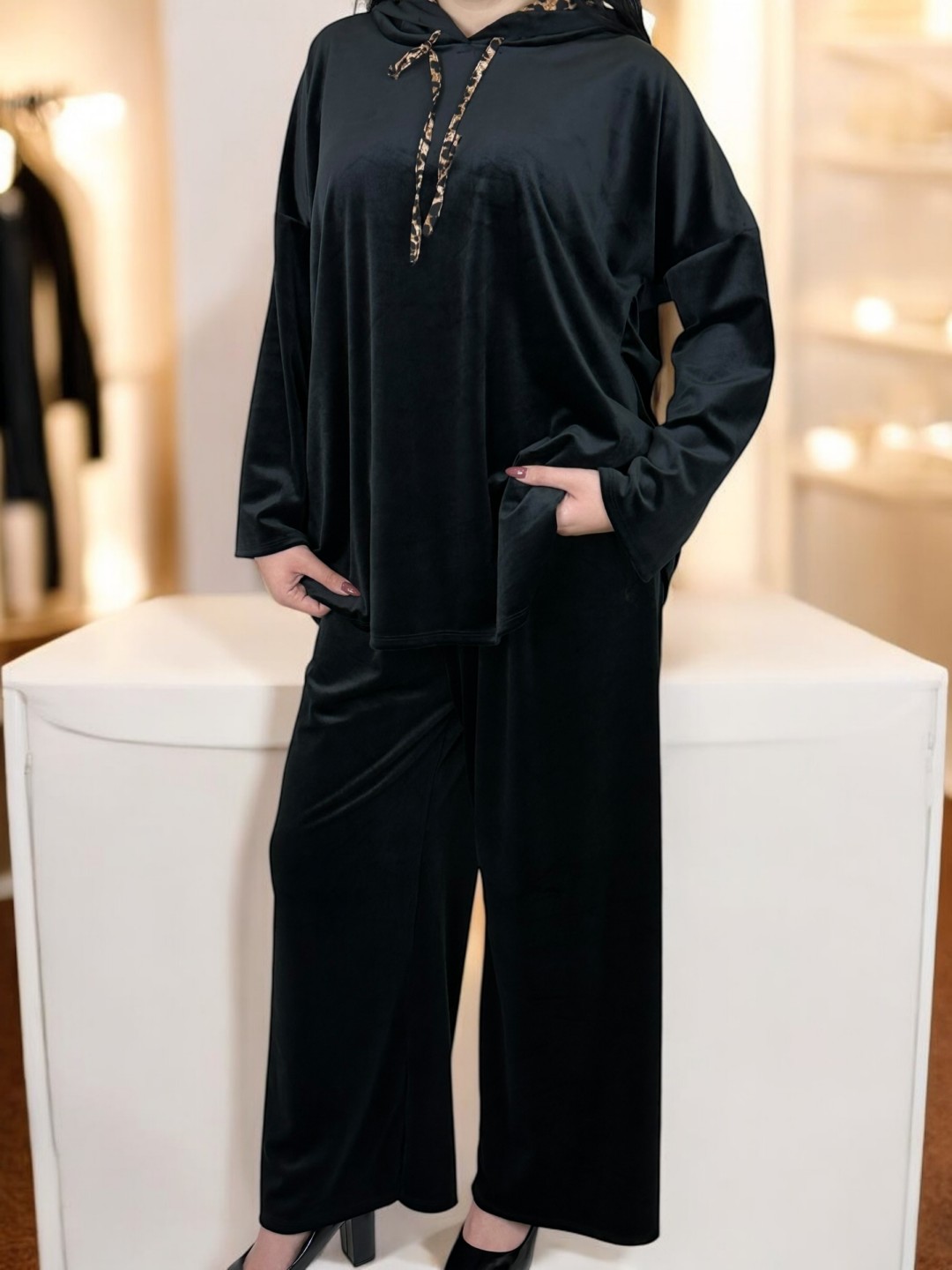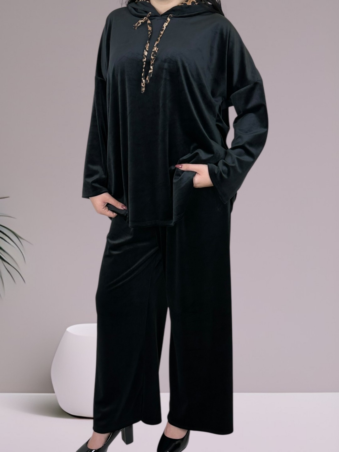 Αναδείξτε τη γυναικεία σας όψη με το μοναδικό σετ βελούδινο με λεπτομέρειες σε σχέδια λεοπάρ. Σε plus size για κάθε σωματότυπο. Ιδανικό για κάθε περίσταση, από καθημερινές εμφανίσεις μέχρι επίσημα events.