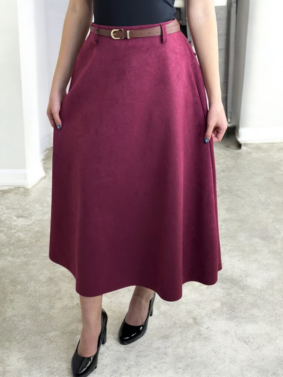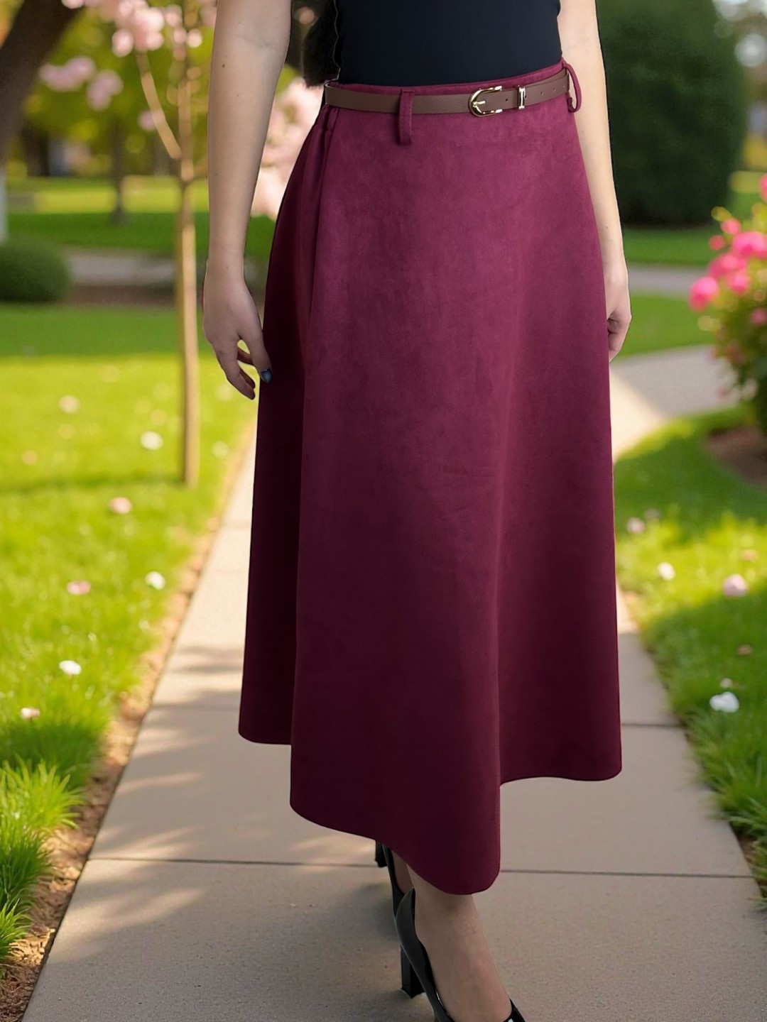 Σουέτ Φούστα με Απαλή Υφή και Λεπτή Ζώνη