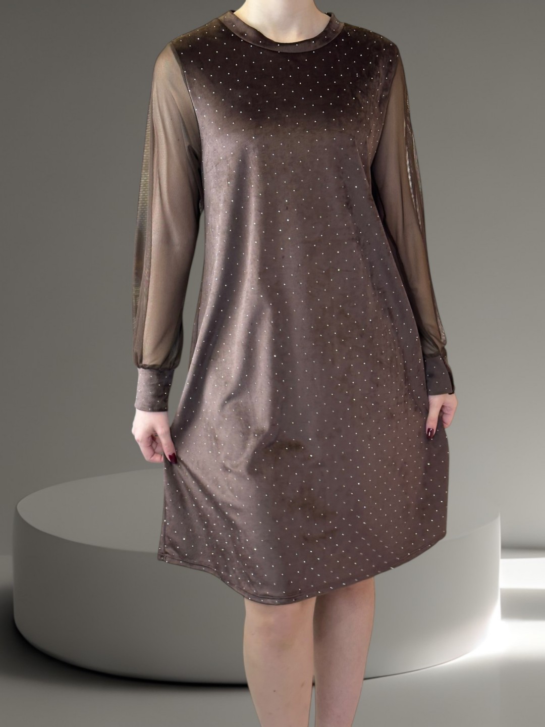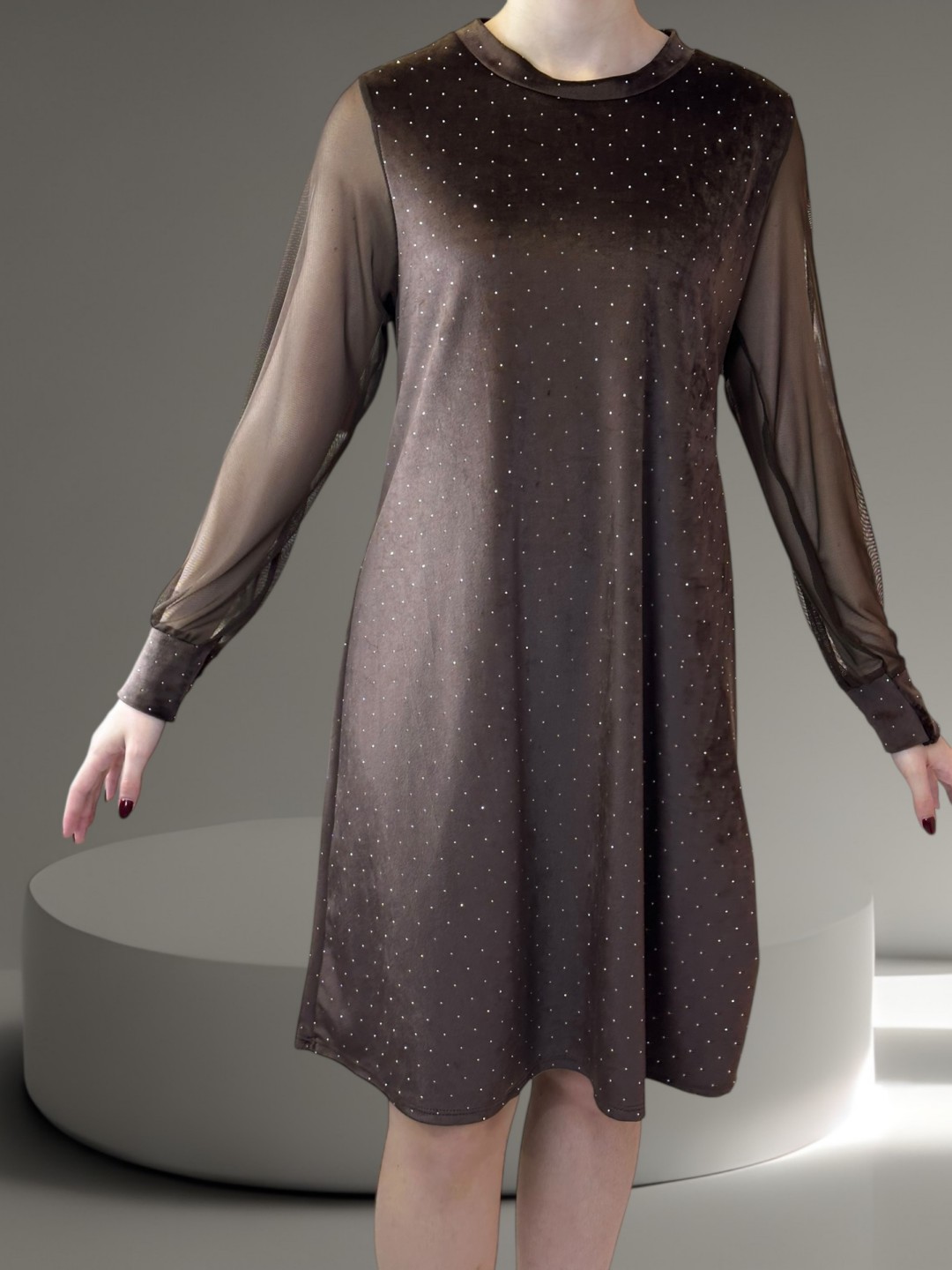 Sparkle Βελούδινο Φόρεμα με Διαφάνεια