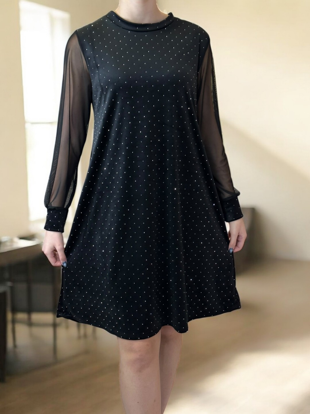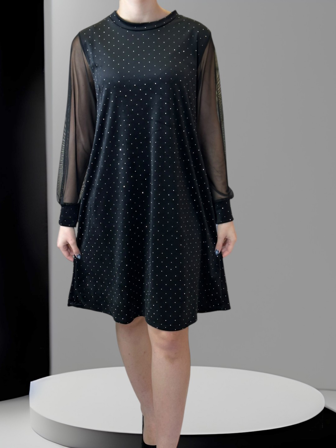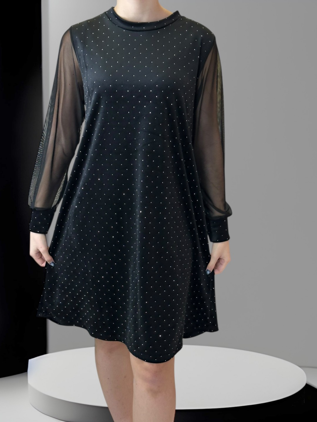 Κάντε δικό σας το Sparkle Βελούδινο Φόρεμα με Διαφάνεια σε plus size και αναδείξτε την κομψότητά σας. Ένα one size φόρεμα που προσαρμόζεται τέλεια στην σιλουέτα σας, προσφέροντας άνεση και αυτοπεποίθηση.