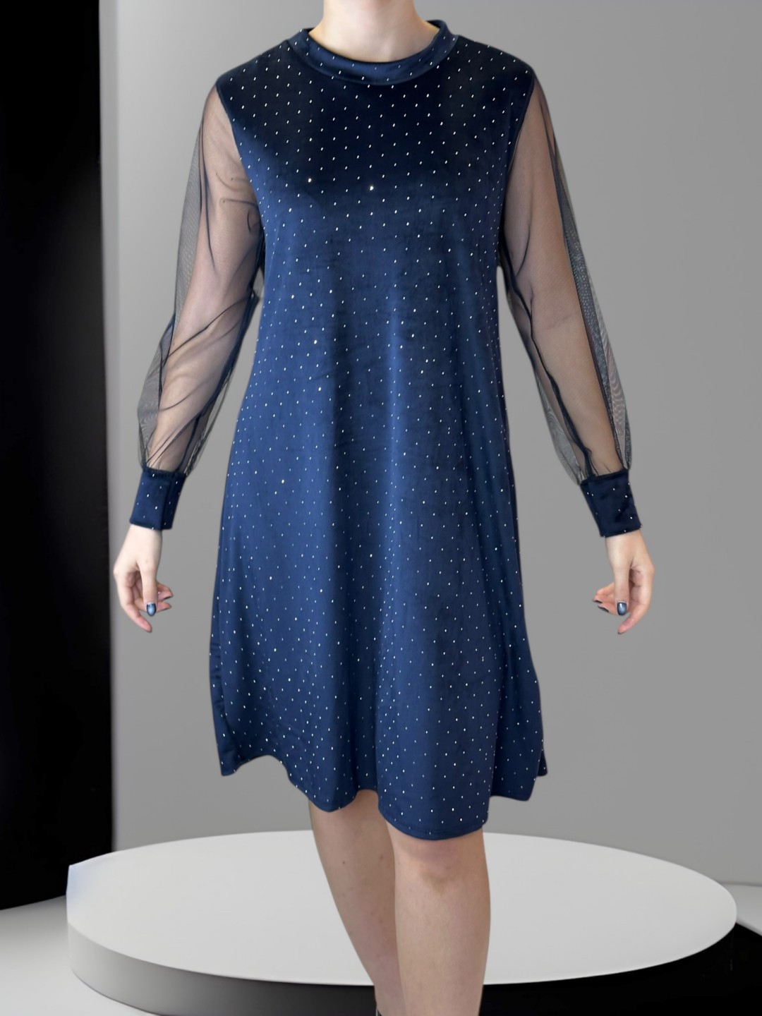 Sparkle Βελούδινο Φόρεμα με Διαφάνεια
