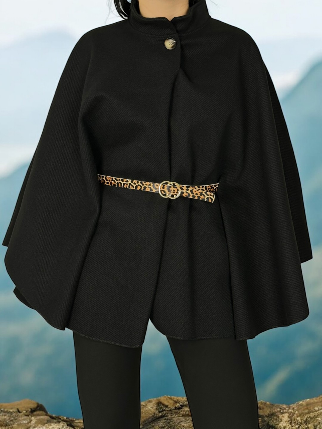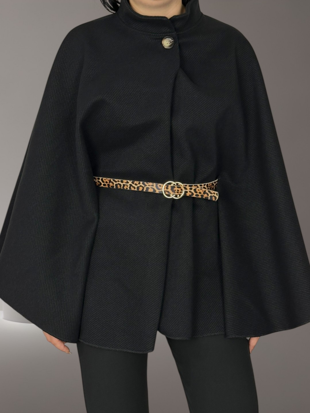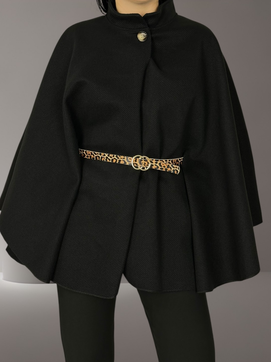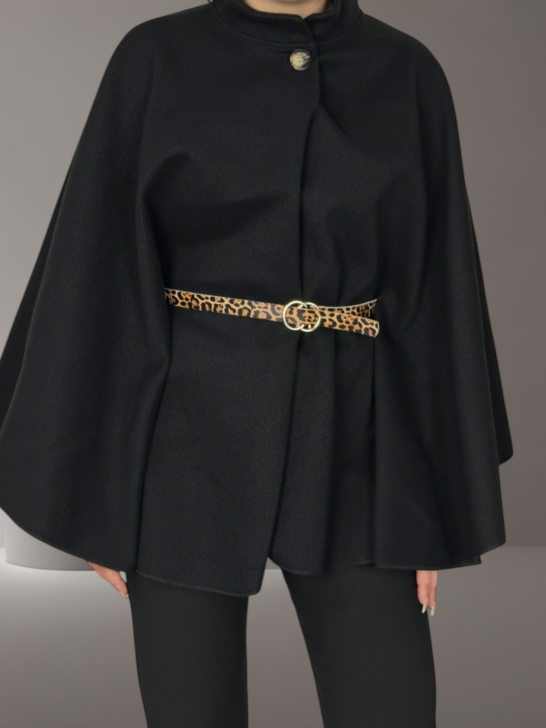 Στυλάτο Poncho με Ζώνη Animal Print