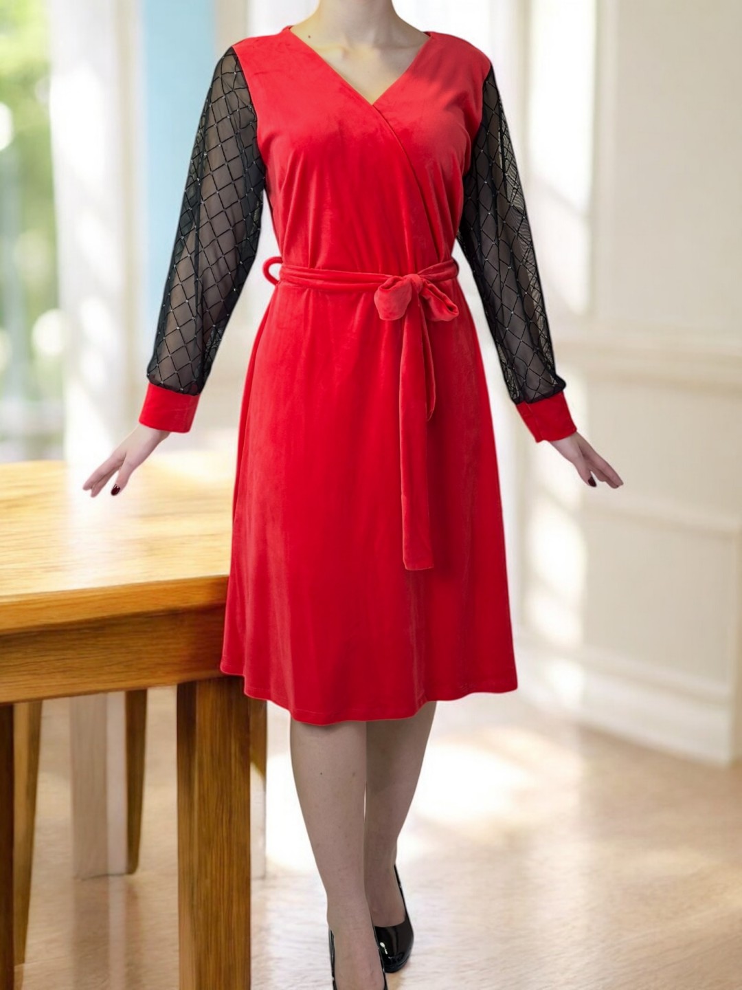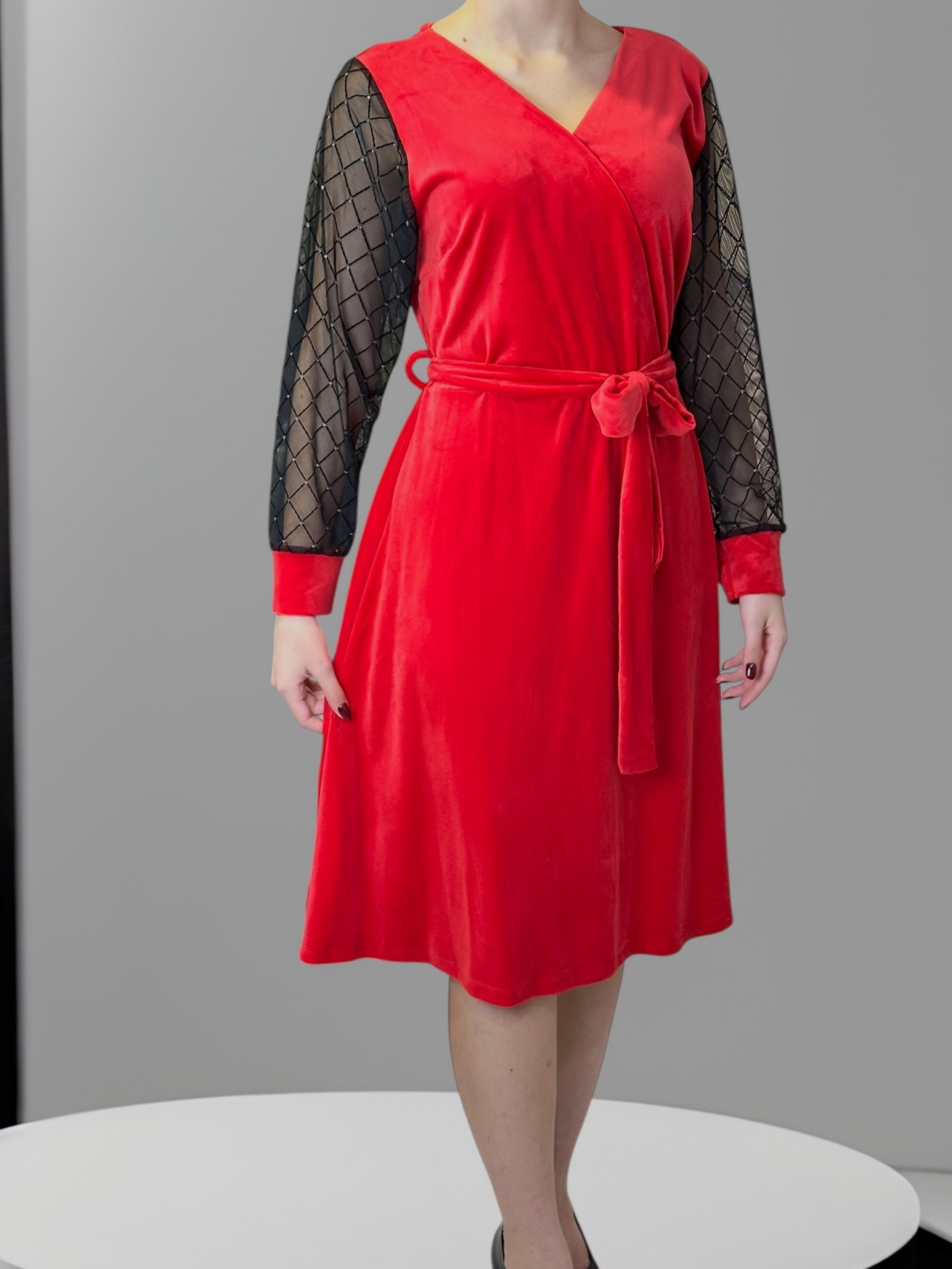 Αναδείξτε την θηλυκότητά σας με το Βελούδινο Φόρεμα Sparkle Sleeves plus size. Τα λαμπερά μανίκια προσφέρουν μία πινελιά γοητείας, ενώ το βελούδινο υλικό του σας προσφέρει άνεση σε κάθε εμφάνιση. Ιδανικό για κάθε σωματότυπο, καθώς είναι διαθέσιμο σε One size.
