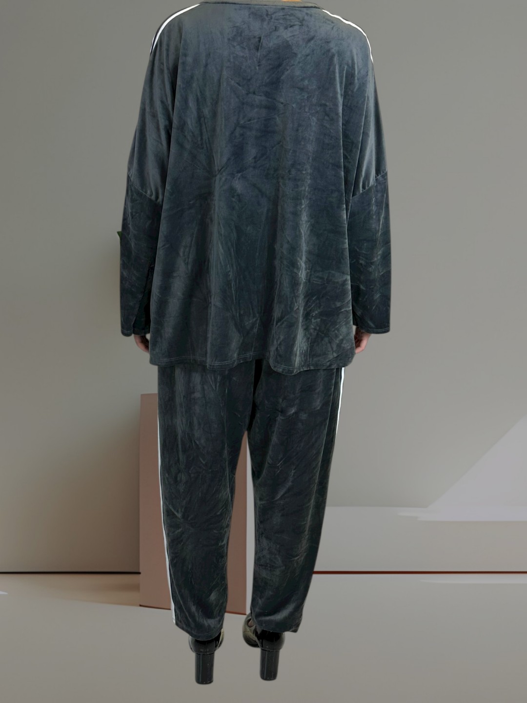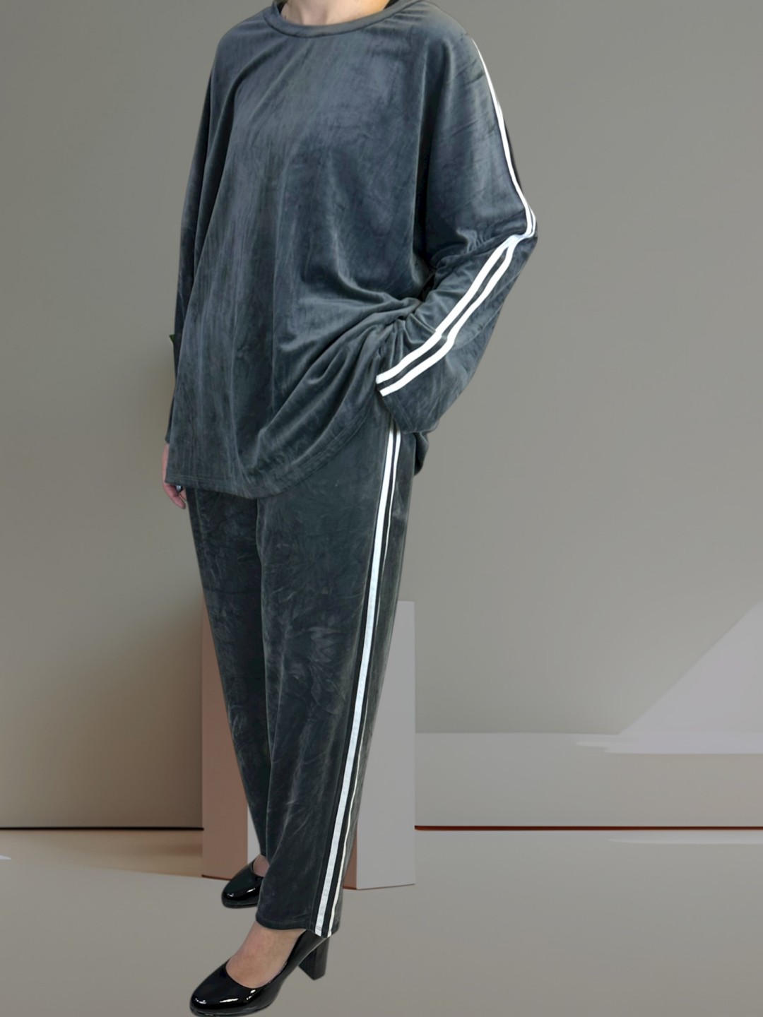 Γυναικείο βελούδινο σετ με ρίγα, ανεβάζοντας την casual chic σου εμφάνιση σε άλλο επίπεδο. Ιδανικό για plus size εναρμόνιση, διατίθεται σε One size για την απόλυτη προσαρμογή και άνεση.