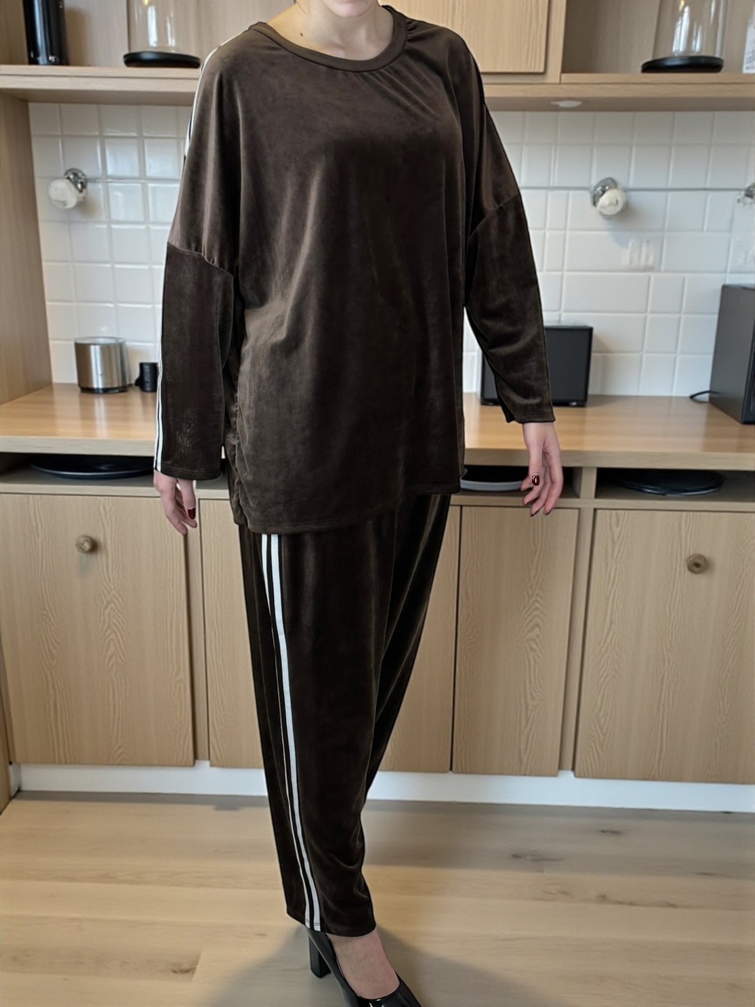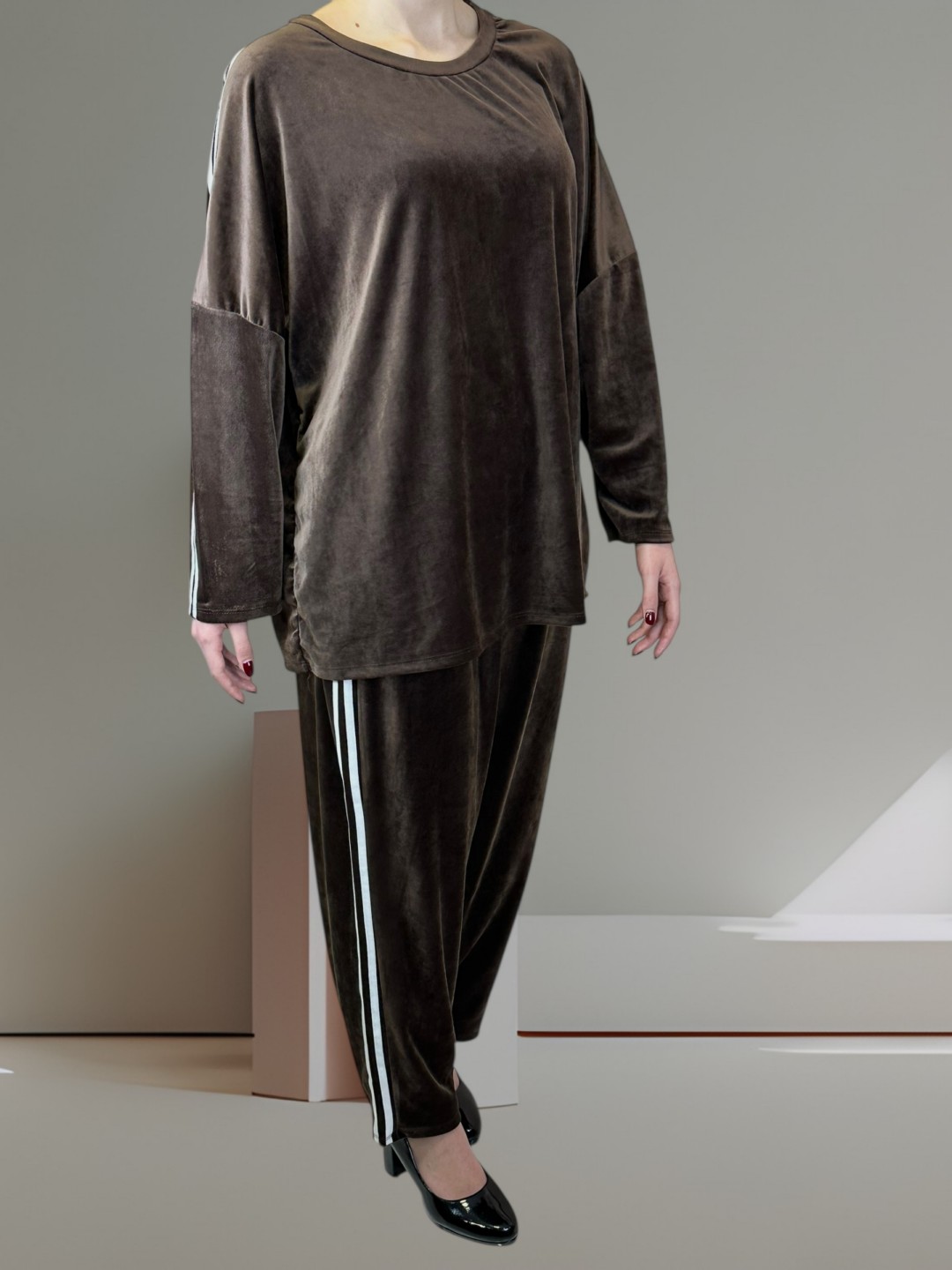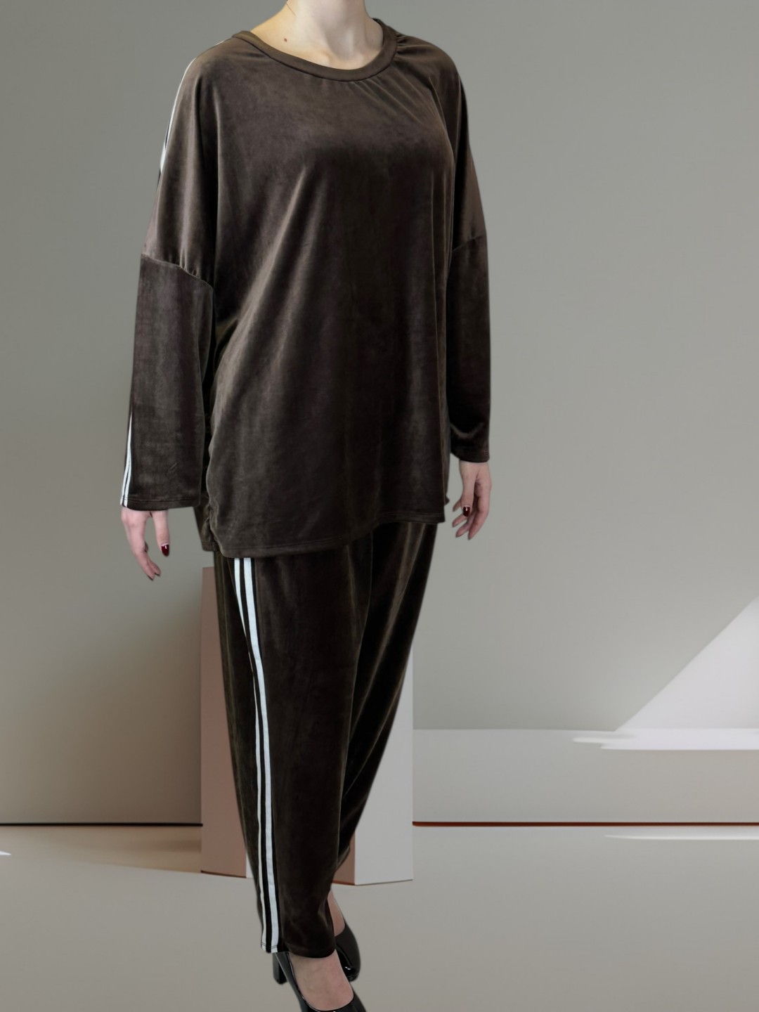 Βελούδινο σετ με ρίγα – casual chic εμφάνιση