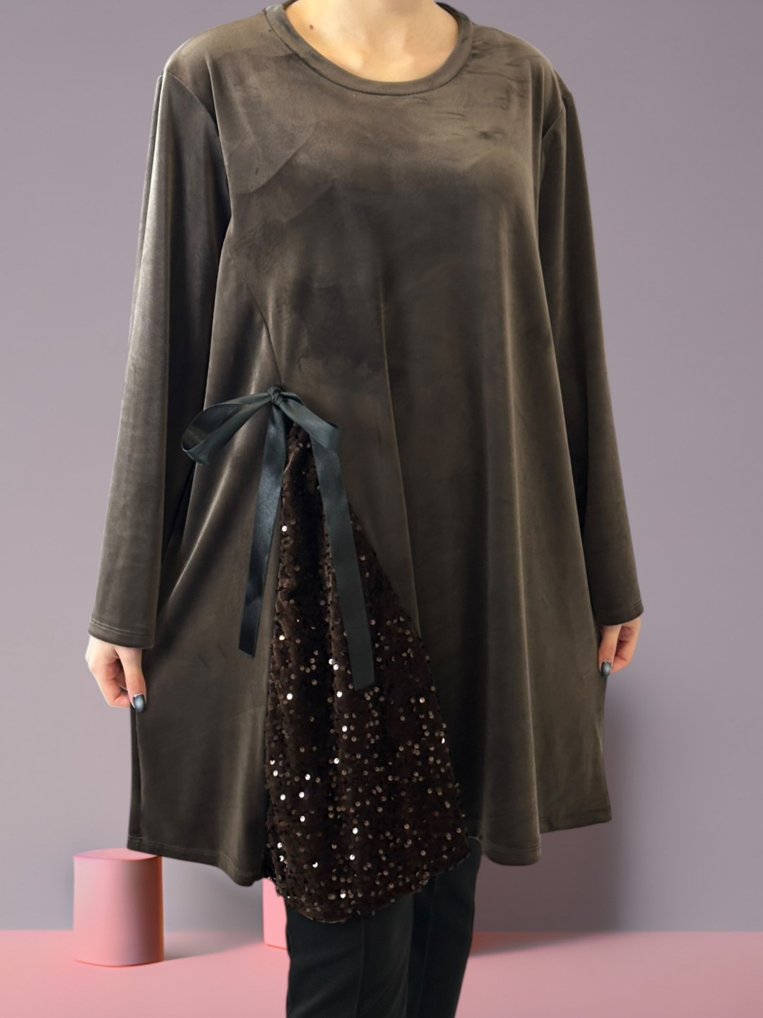 Velvet Lurex Μπλουζοφόρεμα με Πλαϊνή Κορδέλα