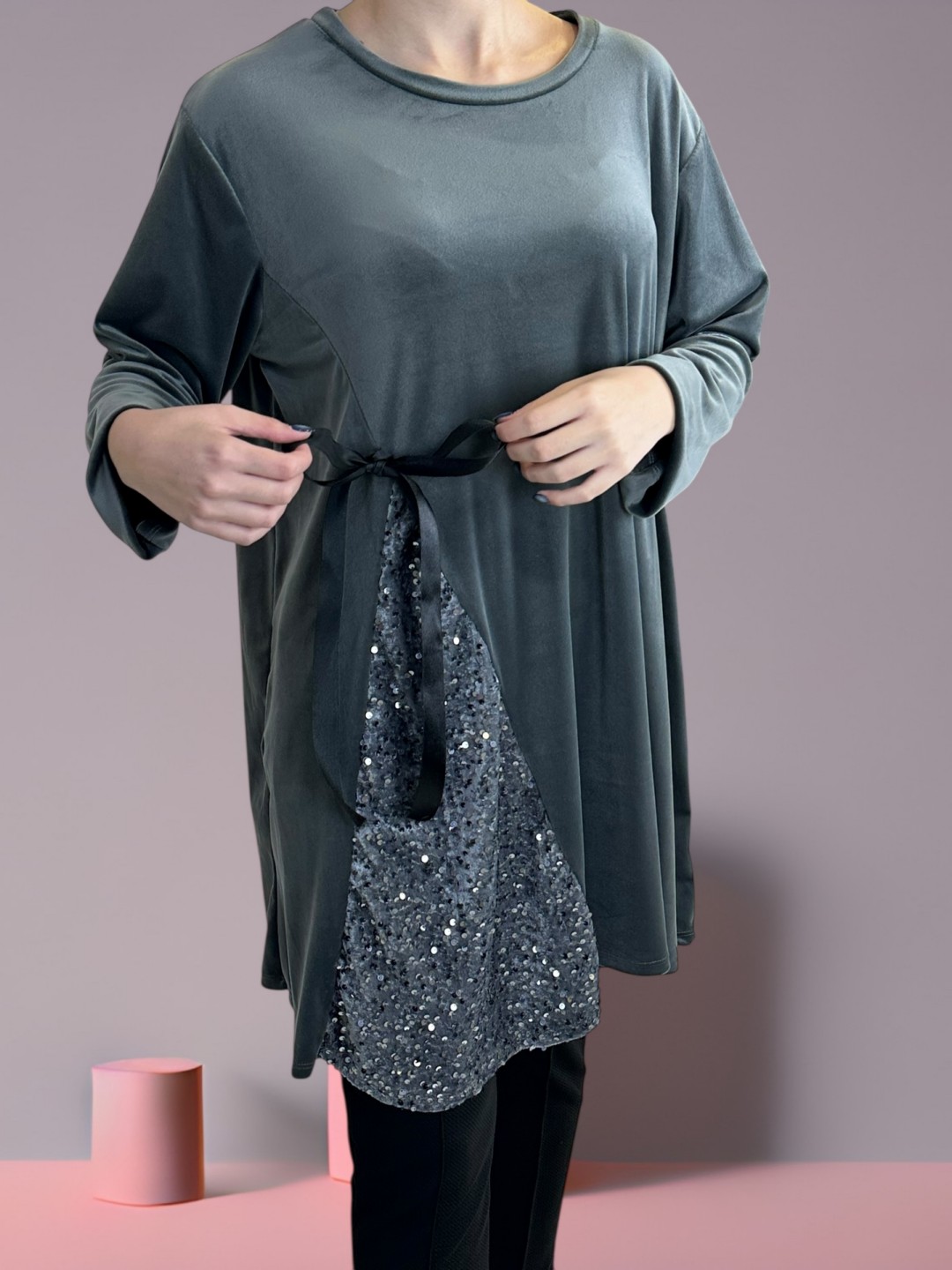 Velvet Lurex Μπλουζοφόρεμα με Πλαϊνή Κορδέλα