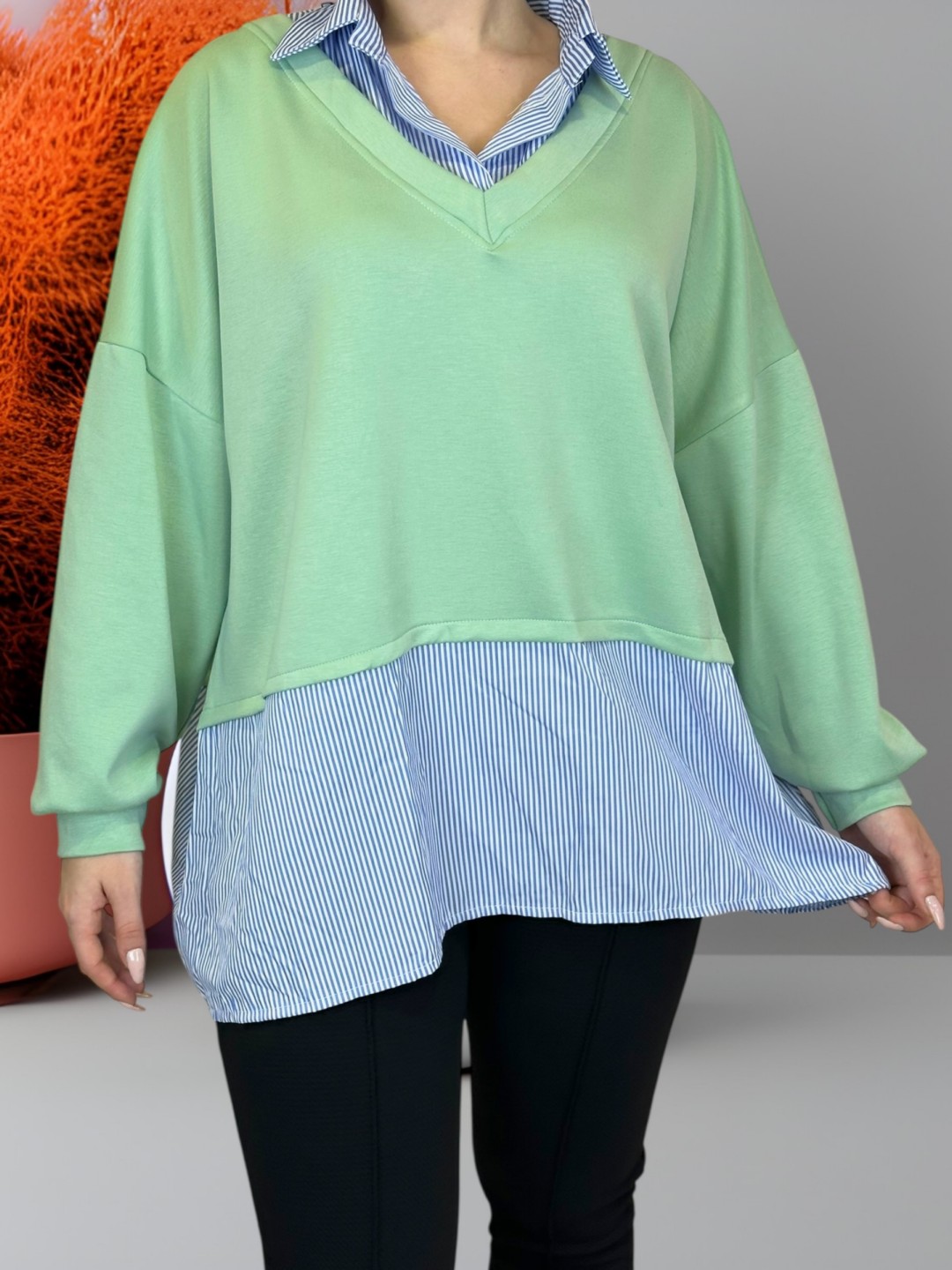 Απογείωσε το στυλ σου με τη Viral μπλούζα 2 σε 1 με πουκάμισο, plus size. Πολυτελής βισκόζη 95% και ελαστάν 5% για άνετη εφαρμογή. Διαθέσιμο σε One size που εφαρμόζει τέλεια σε όλα τα σώματα!
