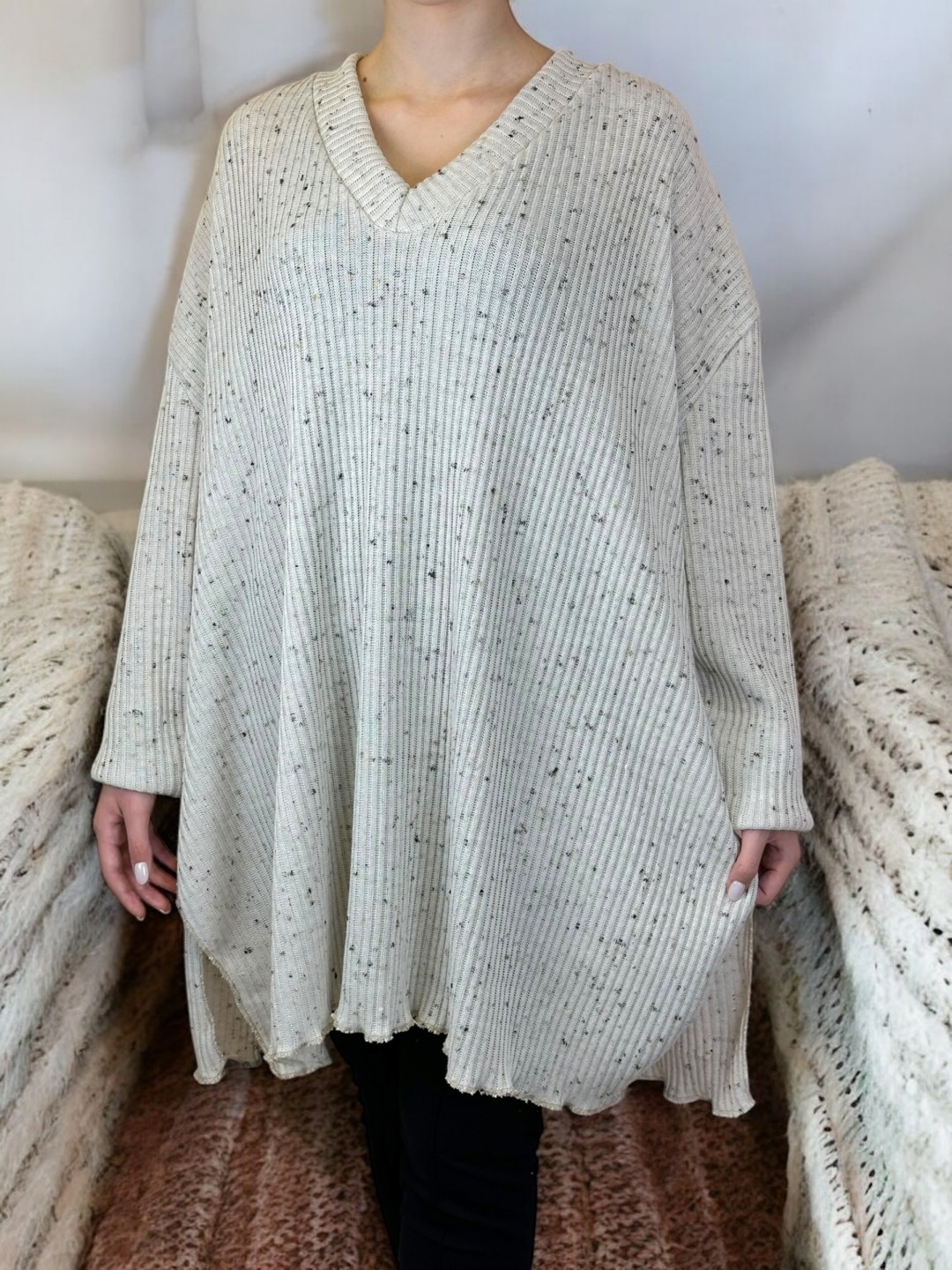 Αναδείξτε την κομψότητά σας με την υπέροχη V-neck μπλούζα plus size. Ιδανική για κάθε εμφάνιση, θα γίνει το αγαπημένο σας κομμάτι. Διαθέσιμη σε One size για ανεπιτήδευτη κομψότητα.