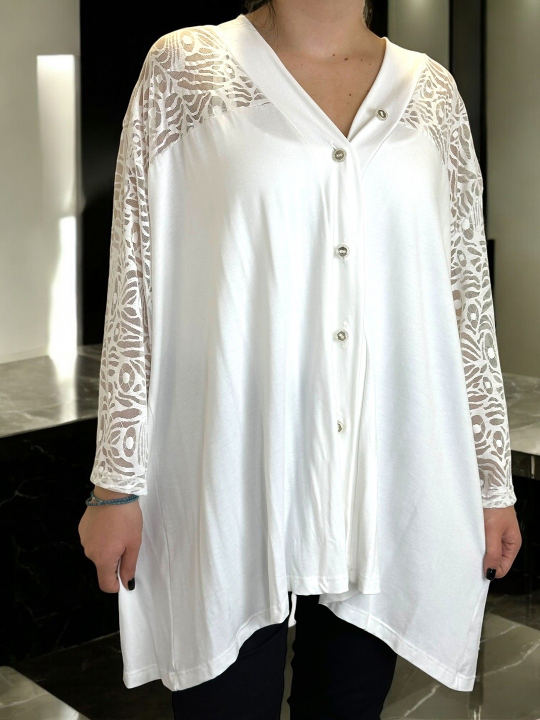 Ζακέτα–πουκάμισο με δαντέλα και κομψή εφαρμογή