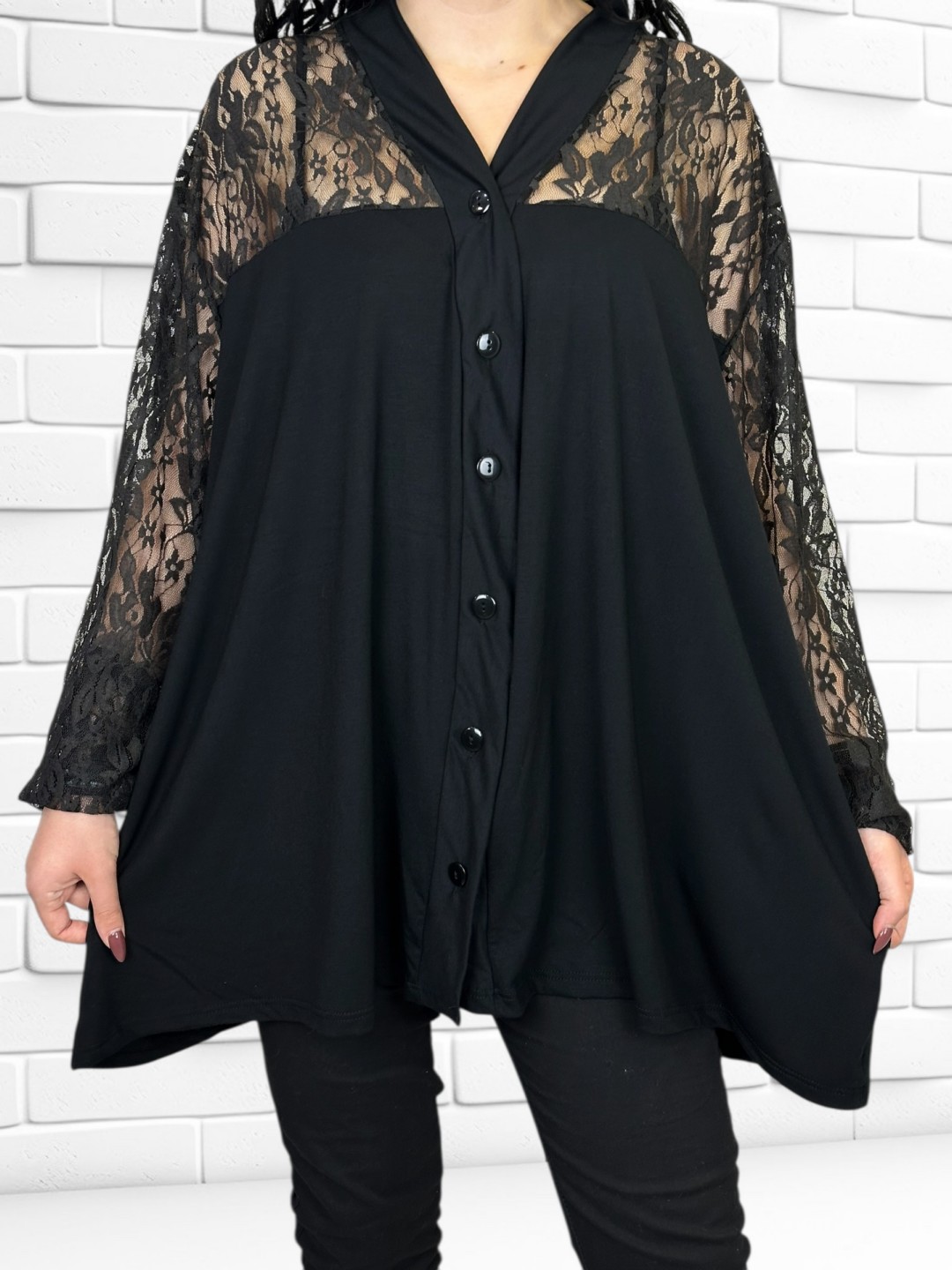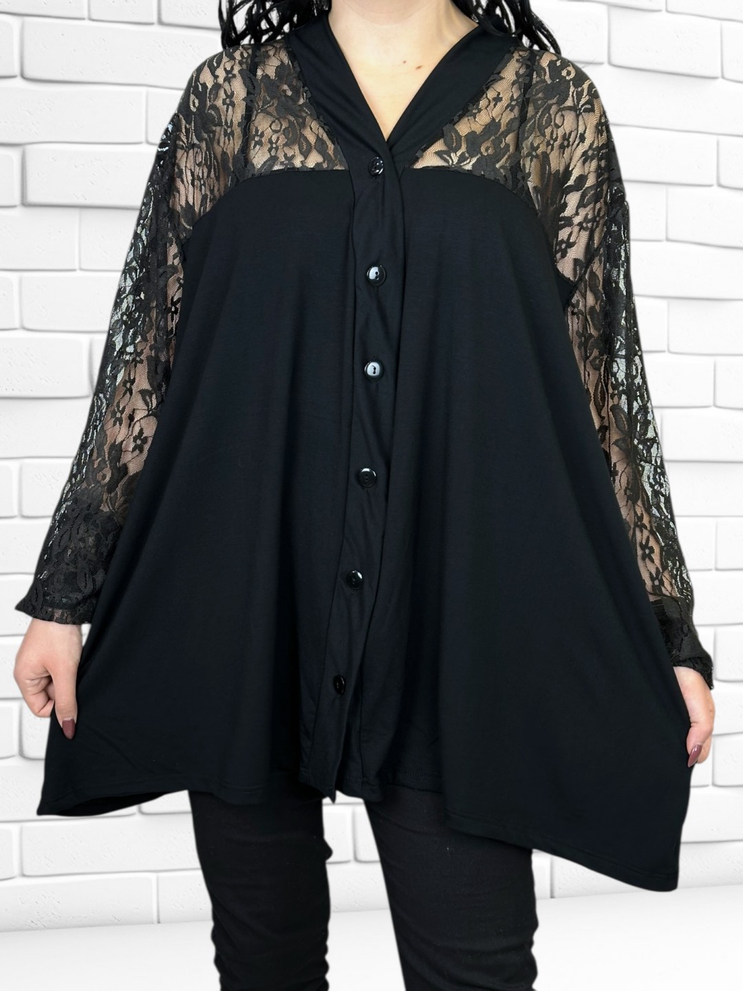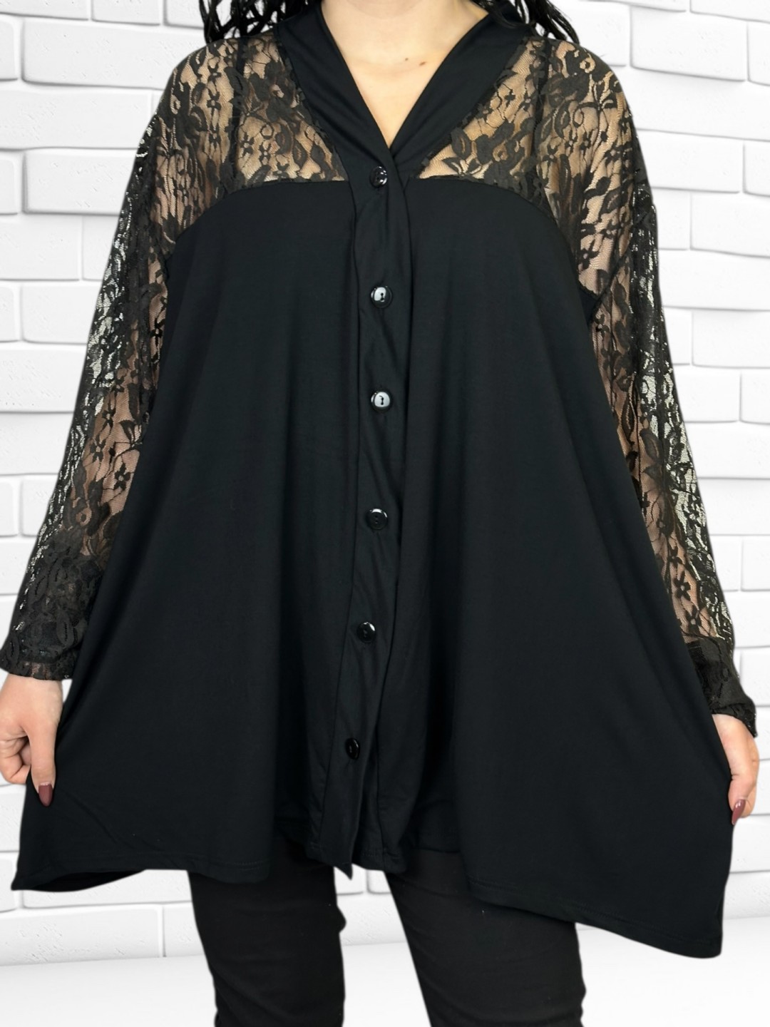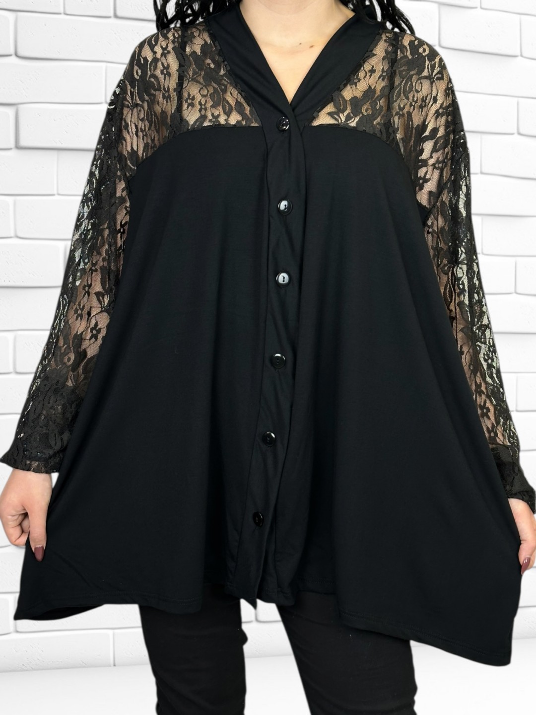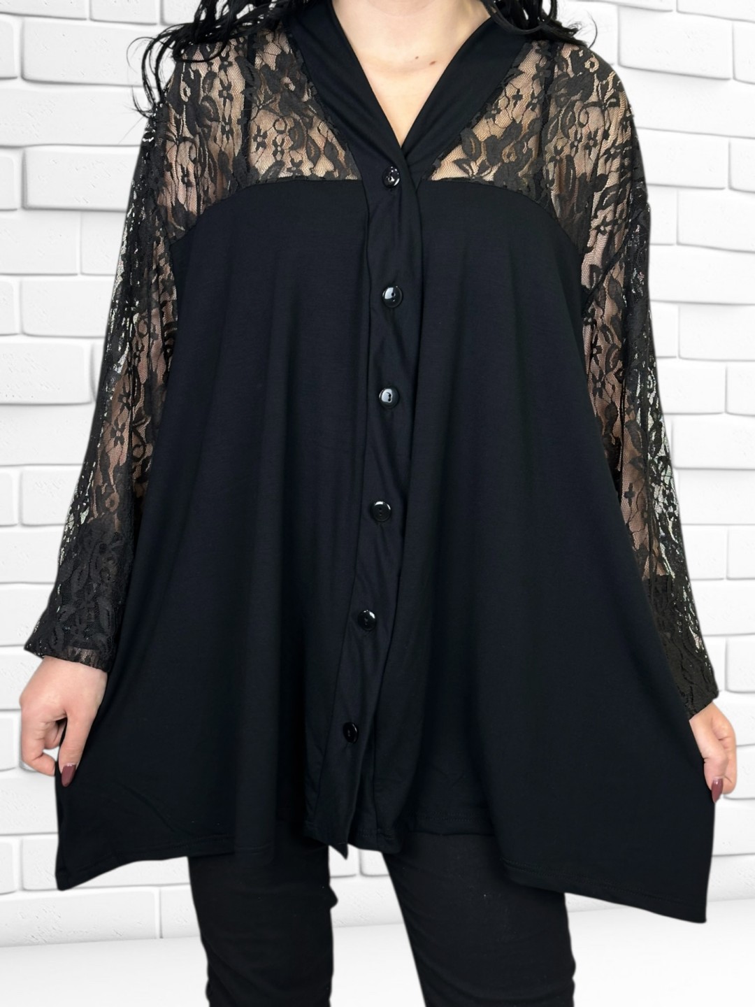 Ζακέτα–πουκάμισο με δαντέλα και κομψή εφαρμογή