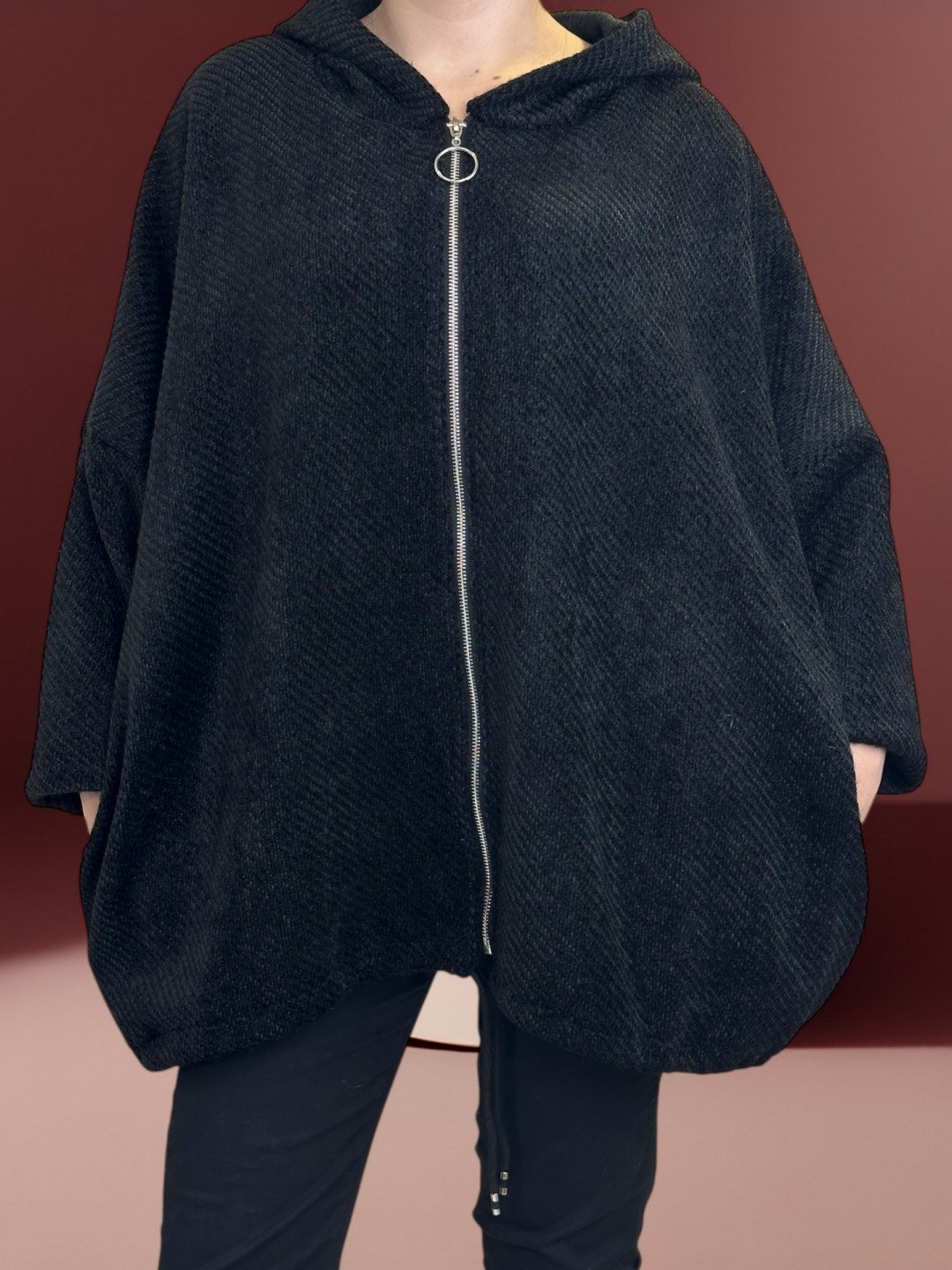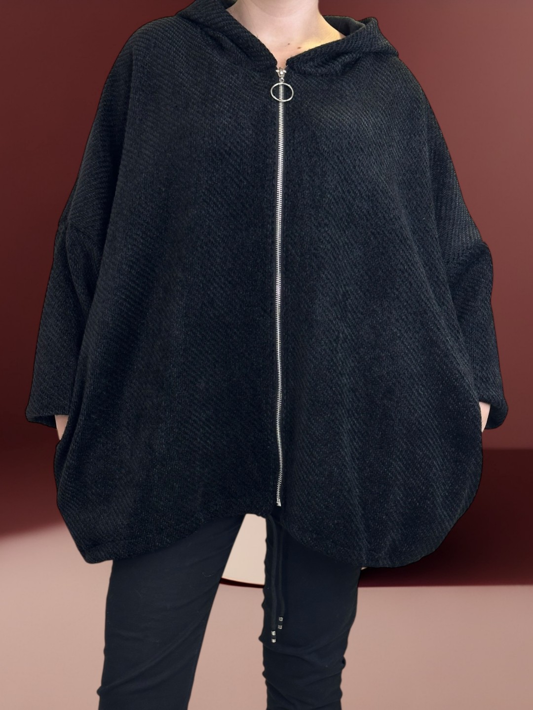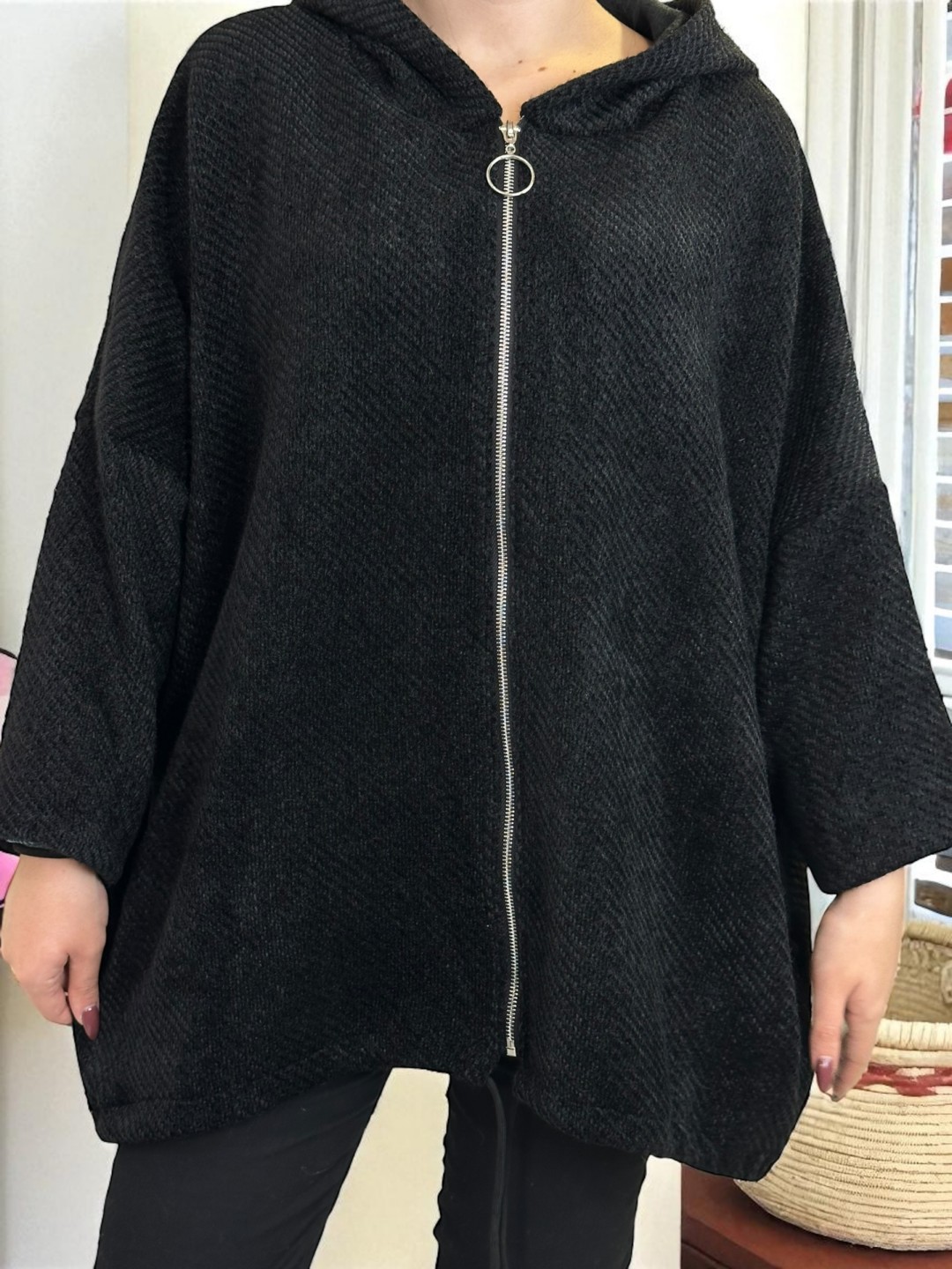 Αναβαθμίστε τη ντουλάπα σας με αυτή την πολυτελή plus size ζακέτα μαύρου χρώματος. Πλήρες φερμουάρ για ευελιξία, ιδανικό για casual ή κομψή εμφάνιση. Διαθέσιμο σε ένα μέγεθος που ταιριάζει σε όλες.